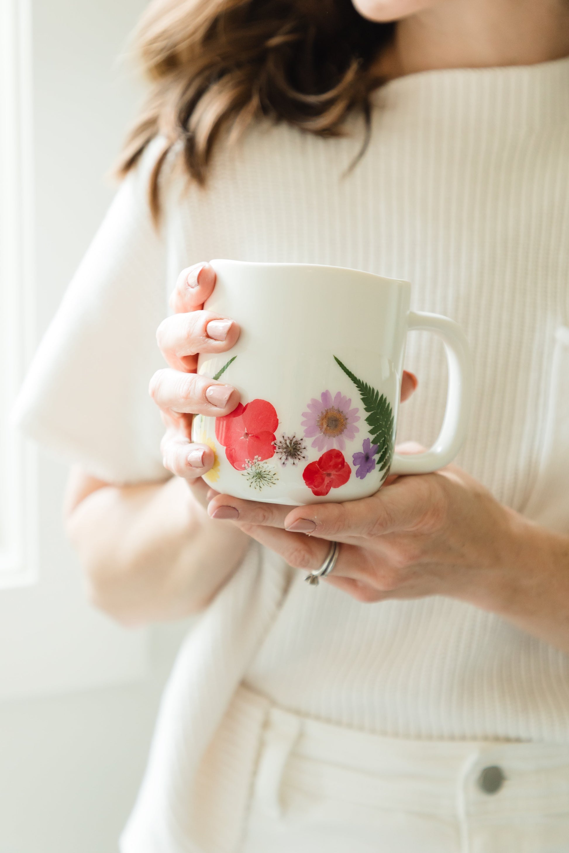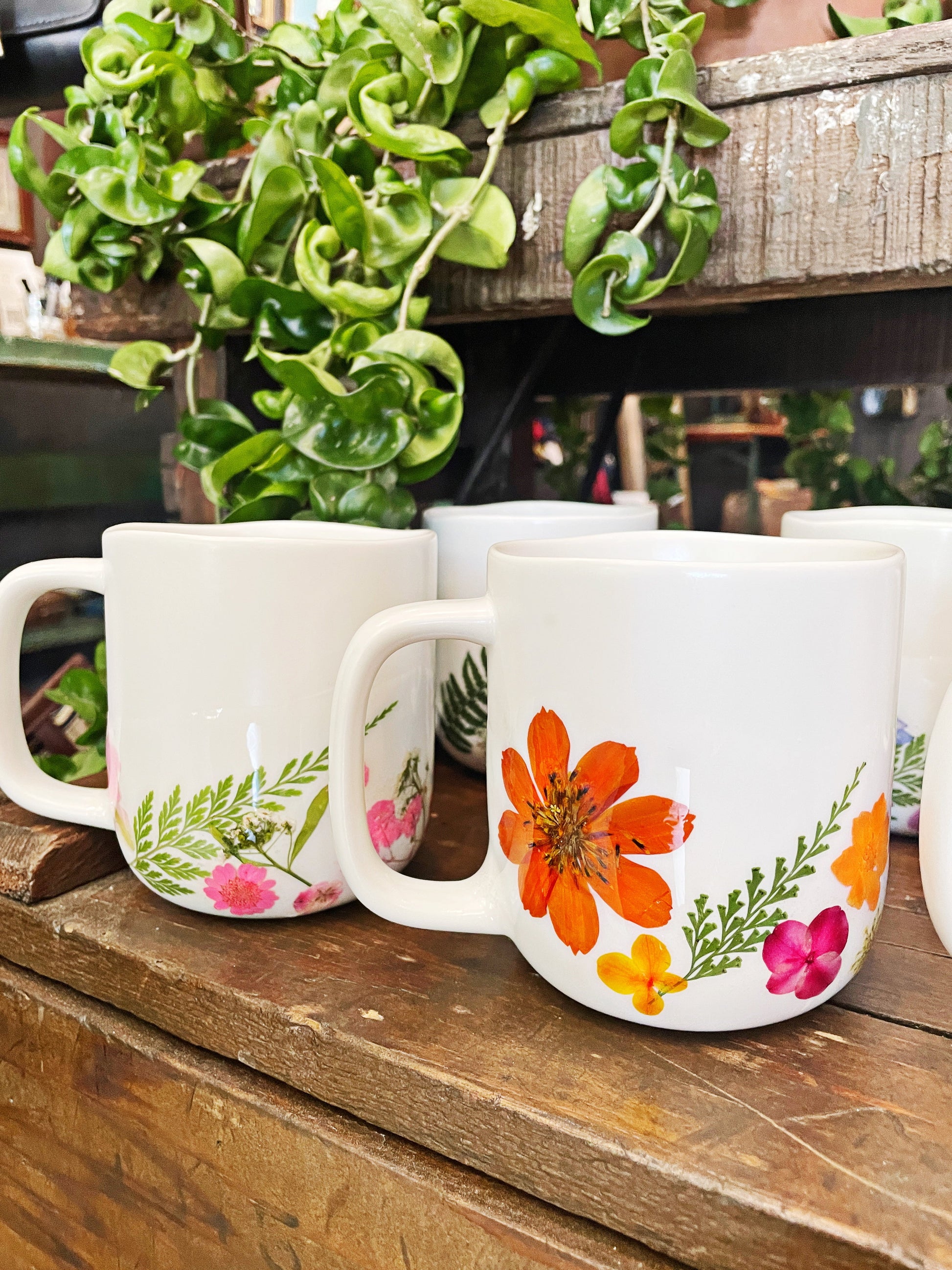 Each of these artisan mugs is a quiet celebration of nature—featuring real dried and pressed wildflowers delicately arranged and sealed beneath a crystal-clear coat of food-safe epoxy resin. Designed to preserve the beauty of the blooms, each mug is a unique piece meant to bring a touch of the outdoors to your daily ritual.