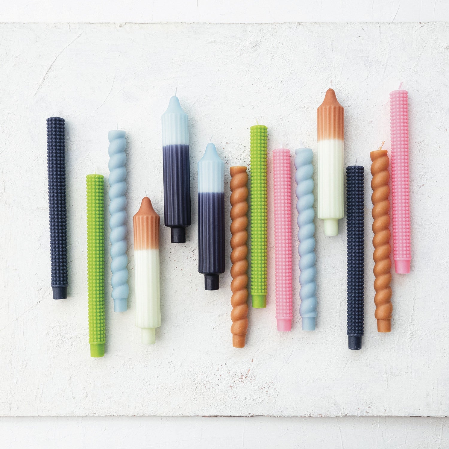Bring a subtle yet captivating aesthetic to your decor with these two-tone pleated taper candles. Featuring a soothing blend of camel and mint hues, these unscented candles add a refined touch to any setting, from cottagecore to modern bohemian. Crafted from paraffin wax, each candle boasts a 20-hour burn time, ensuring a warm, inviting glow for those long, cozy evenings.