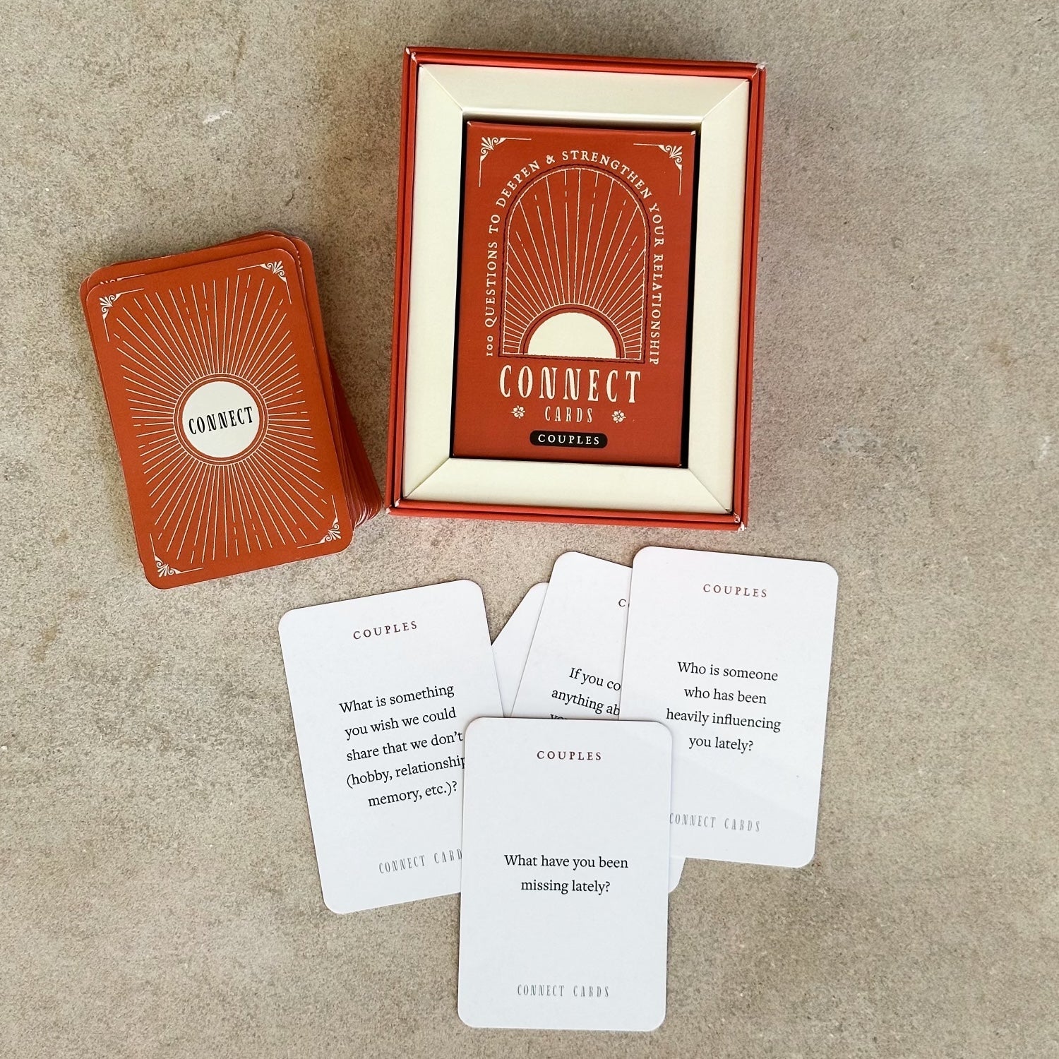 In our busy and demanding day, it’s easy to let quality time slip through the cracks. Connect Cards are here to help you prioritize your relationship, one card at a time. Whether you’re dating, newlyweds or have been together for years, this deck of 100 question cards is designed to bring you closer and enrich your journey together.
