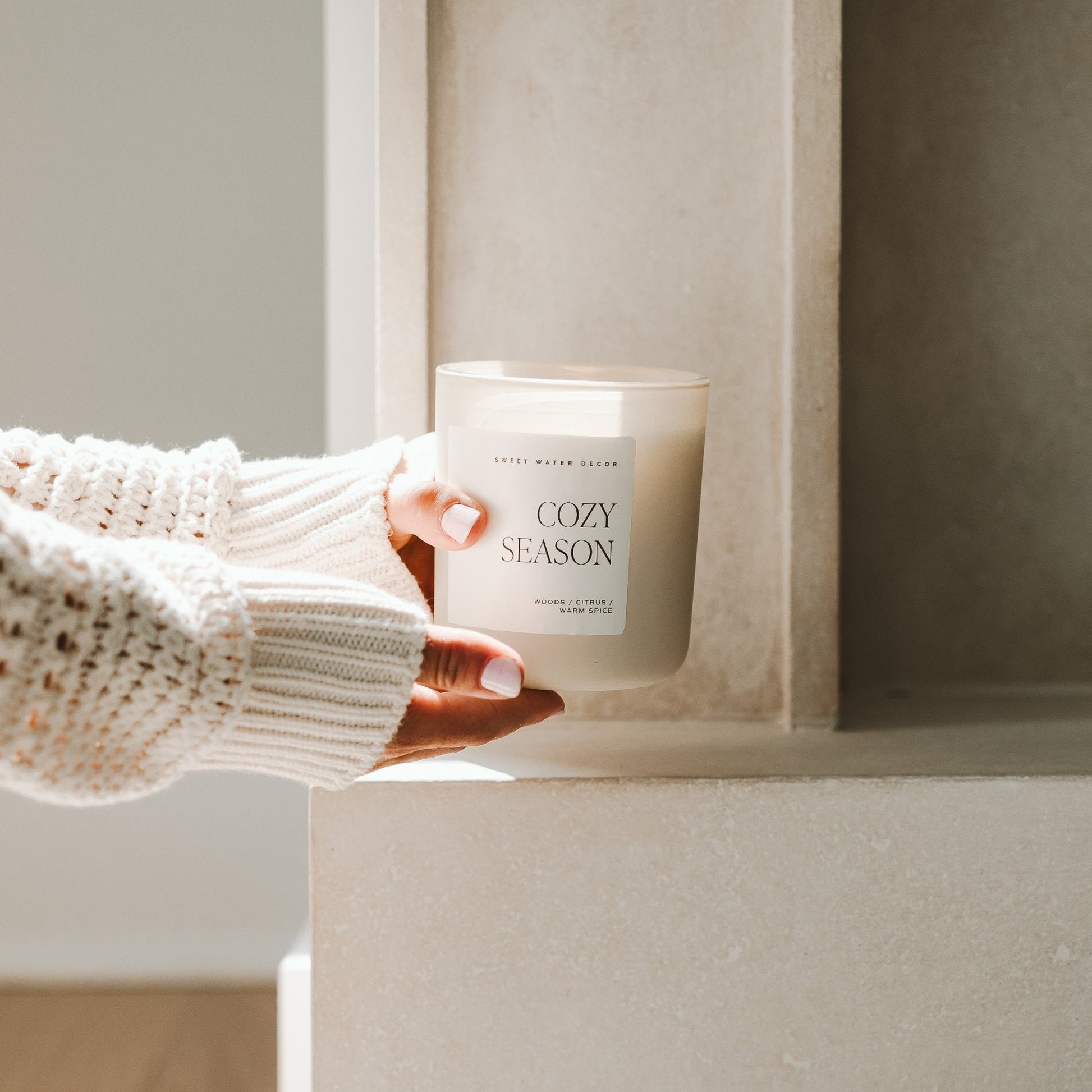 Our Cozy Season candle is a deep, inviting scent that transitions well throughout Fall and Winter. It will remind you of crisp evenings spent bundled up by the fire! With scent notes of woods, warm spice, and citrus, Cozy Season is perfect to enjoy during all of your favorite chilly months!
