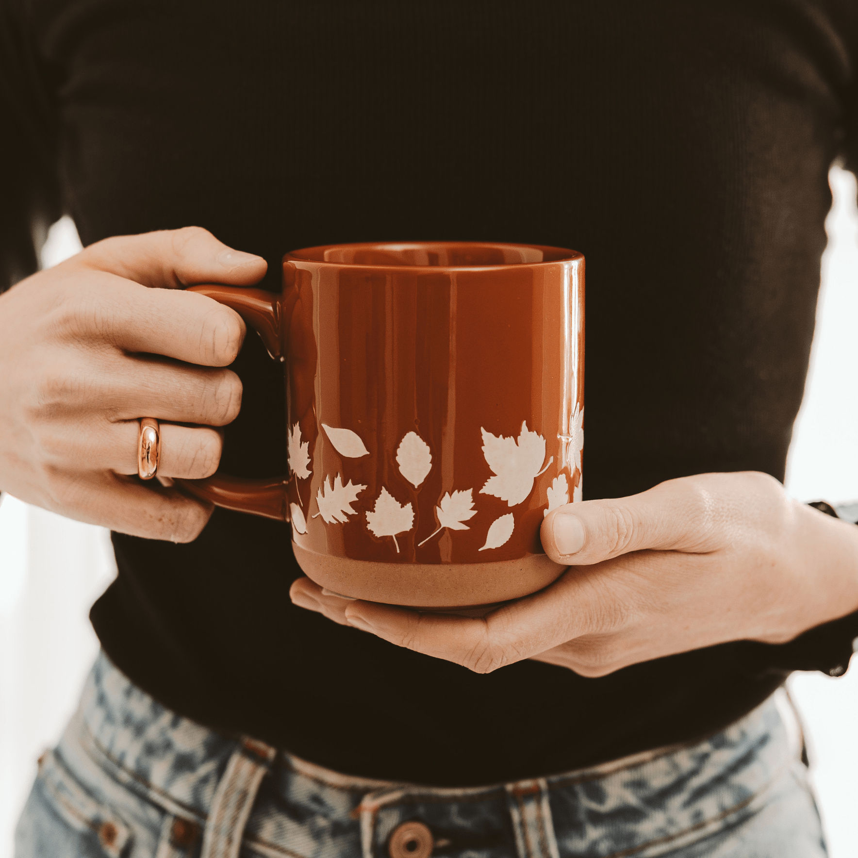 Warm up your Autumn mornings with the perfect Fall design. Whether you're enjoying coffee, tea, or a cozy hot cider, this Autumn coffee mug is designed to enhance your fall experience. A delicate leaf pattern sits on a rich orange background, capturing the essence of the season. Celebrate the season and savor your favorite drinks in style with this beautiful Fall Mug.