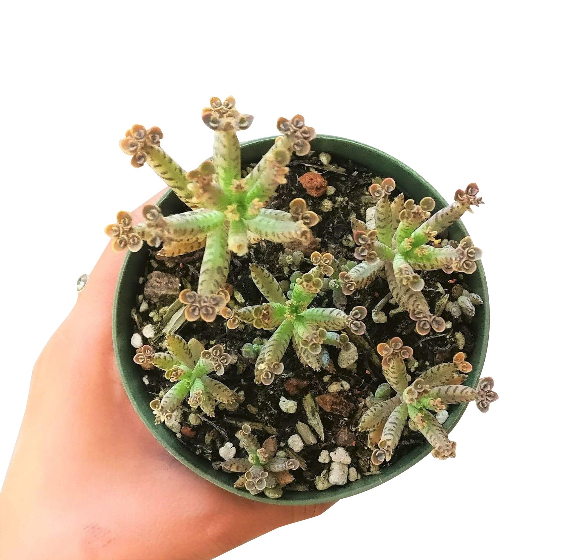 Mother of Millions, a Bryophyllum species, or also called Kalanchoe tubiflora, is an extremely rare and exotic succulent that can produce millions of baby plantlets quickly that spread and form new colonies. The tip of each leaf grows multiple tiny offsets which drop and root easily to form new plants.