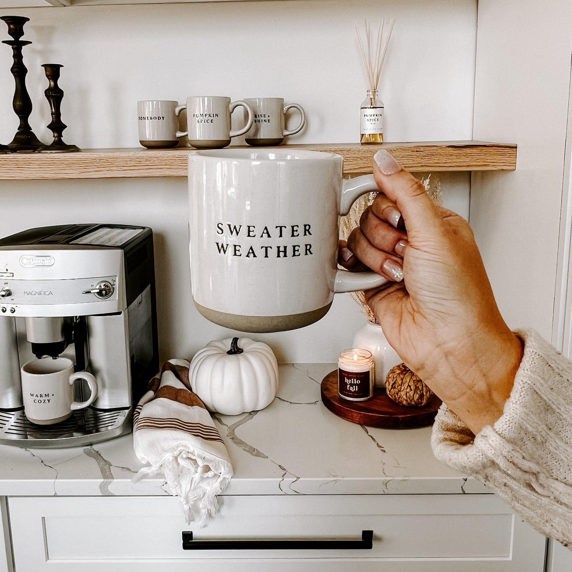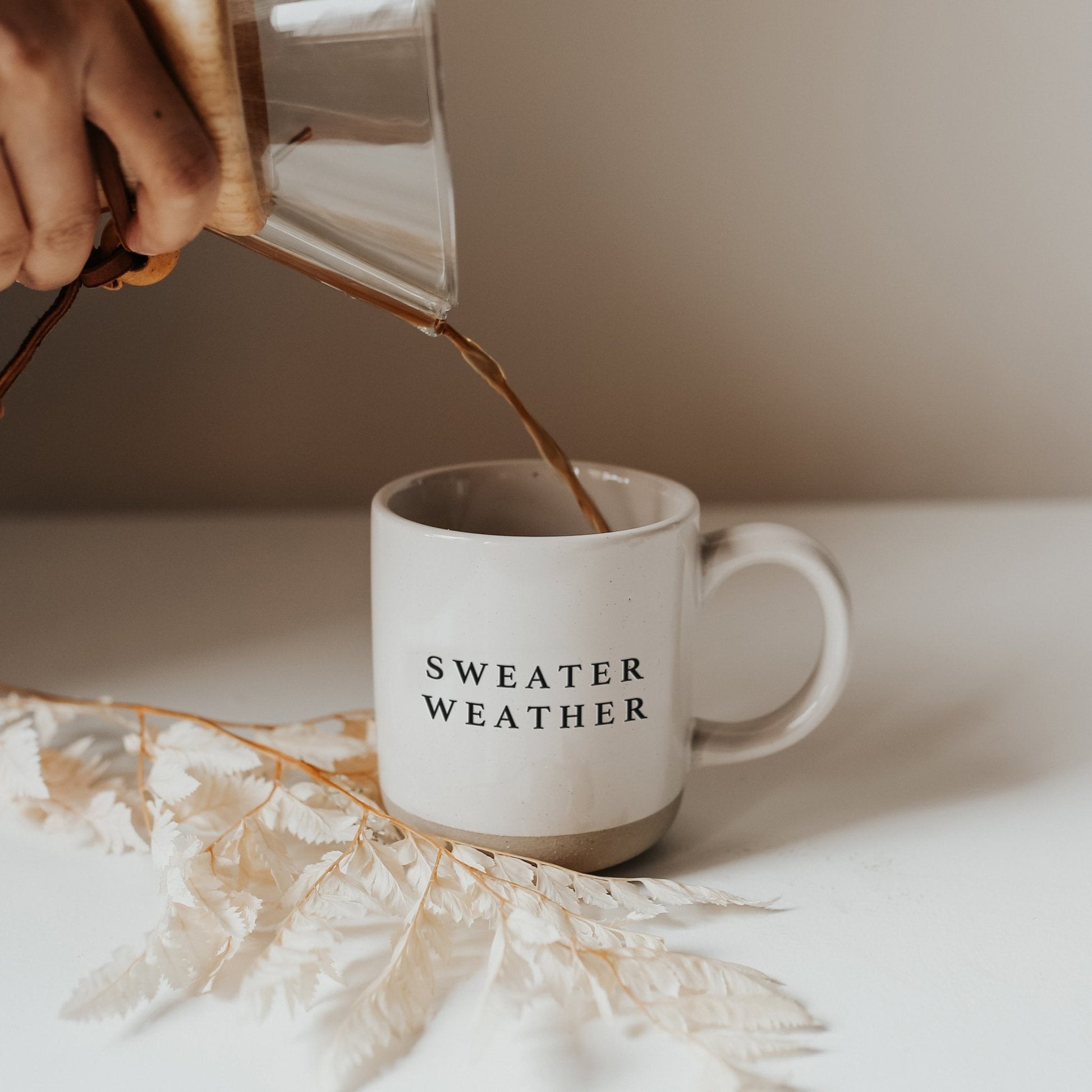 Who doesn't love fall? Get ready to bring in your favorite season with our Sweater Weather Stoneware Mug! The 14 oz size is the best size coffee cup to cozy up with a hot beverage fireside or at a bonfire! Our rustic mugs make great gifts for birthdays, Christmas or for any fall lover in your life! Your PSL will taste so much better out of your new fall mug!
