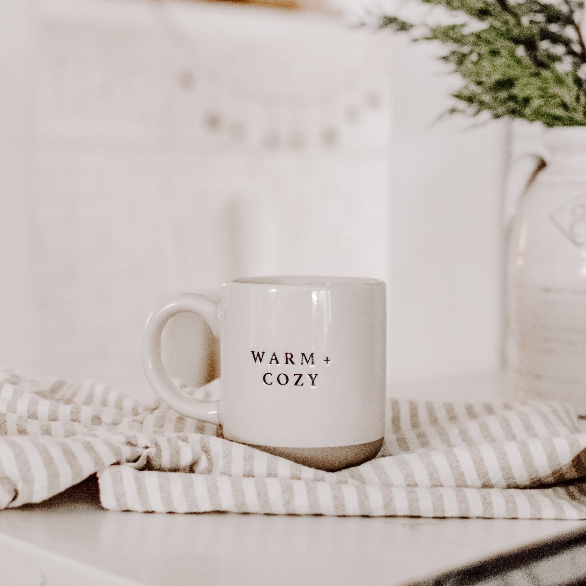 Do you love the holidays? Get ready to bring in your favorite season with our Warm + Cozy Stoneware Mug! It's rustic style is perfect to blend right in with your Christmas decor! The 14 oz size is the best size coffee cup to cozy up with in front of the fireplace. Our rustic mugs make great birthday gifts or Christmas gifts!